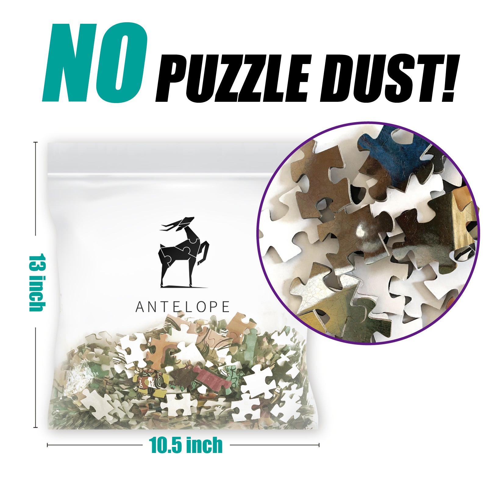 Our puzzles illustrate high definition print with a matte finish. We want our puzzles to feel great textually in your hands. We guarantee 100% dust free. The ribbon cutting of our puzzles has also been refined to ensure smoother fit.