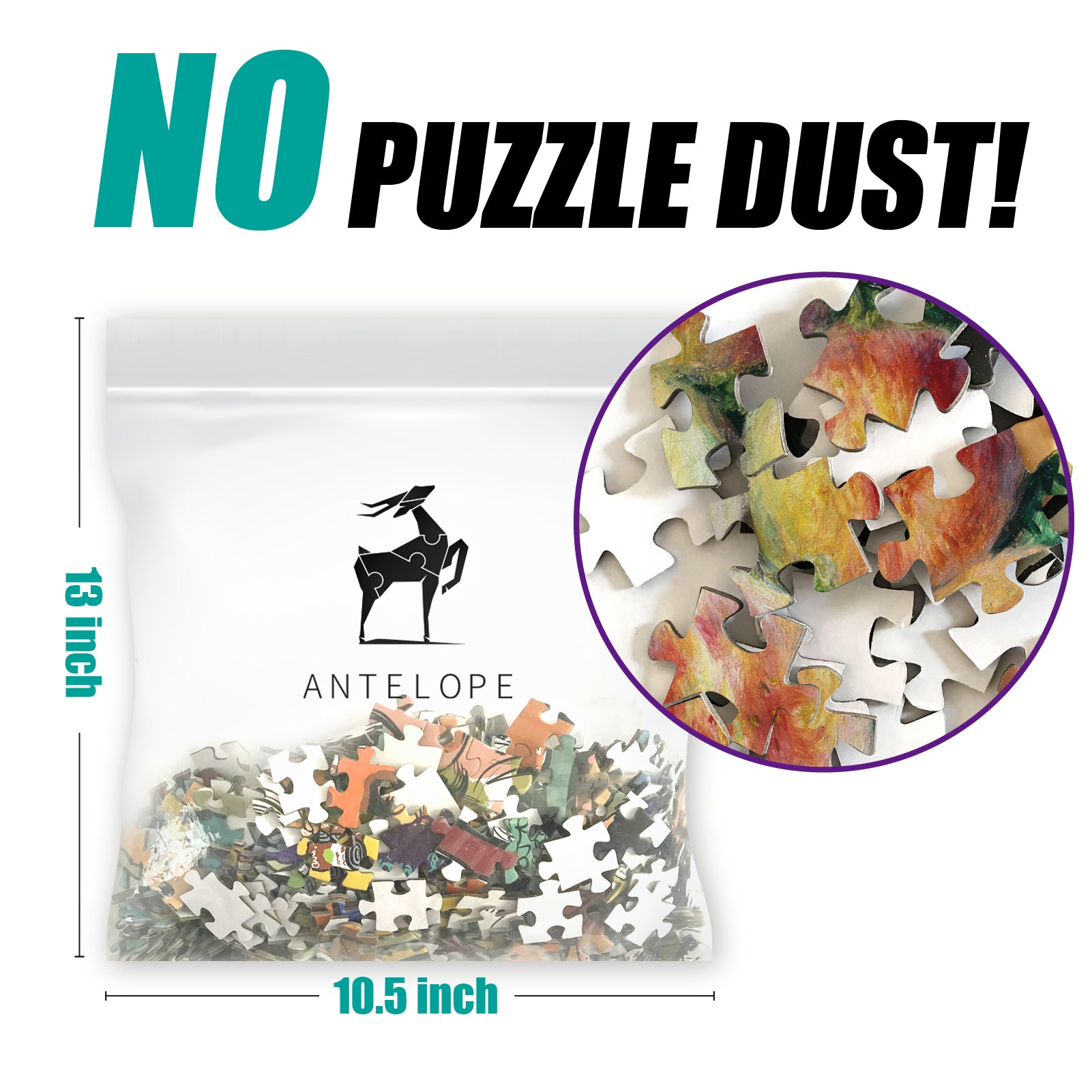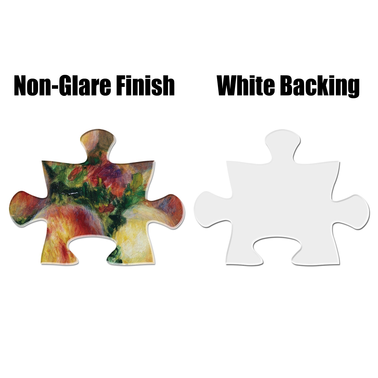 Our puzzles illustrate high definition print with a matte finish. We want our puzzles to feel great textually in your hands. We guarantee 100% dust free. The ribbon cutting of our puzzles has also been refined to ensure smoother fit.