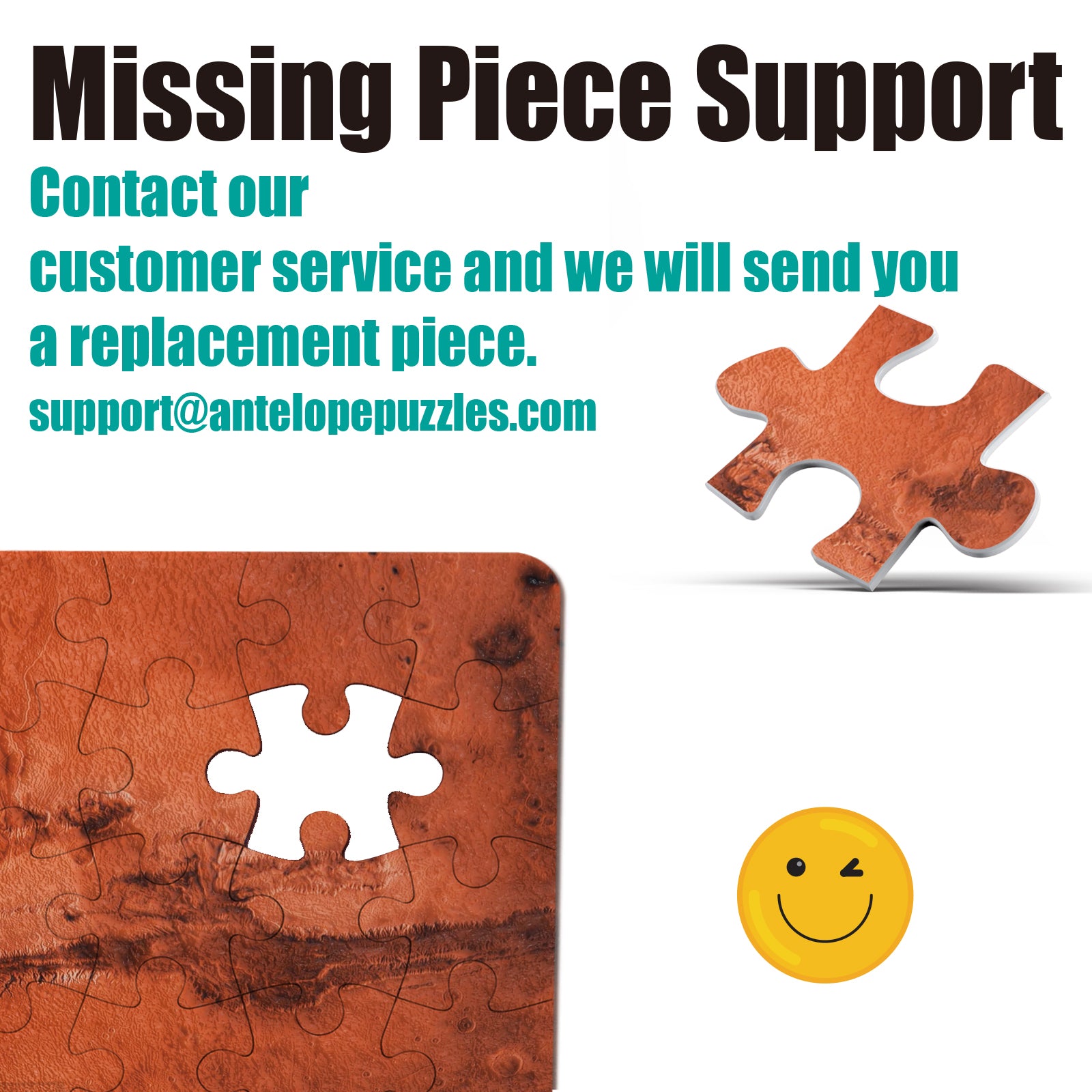 We understand how important it is to have a complete puzzle, and we apologize for any inconvenience. Rest assured, we're committed to ensuring your puzzling experience is enjoyable. If you have any additional questions or need further assistance, please don't hesitate to reach out to our customer support team. Thank you for choosing Antelope Puzzles!