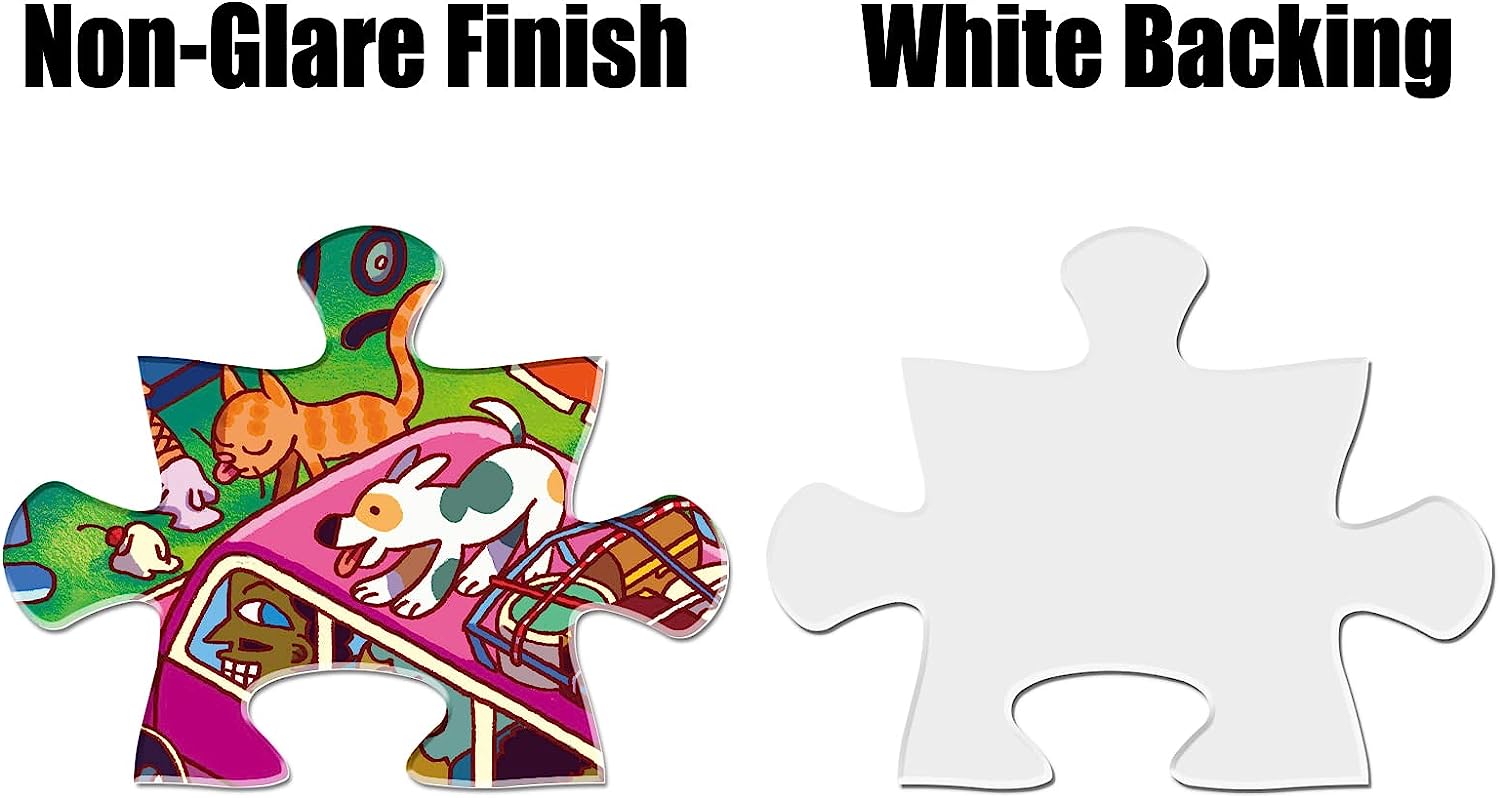 Our puzzles illustrate high definition print with a matte finish. We want our puzzles to feel great textually in your hands. We guarantee 100% dust free. The ribbon cutting of our puzzles has also been refined to ensure smoother fit.