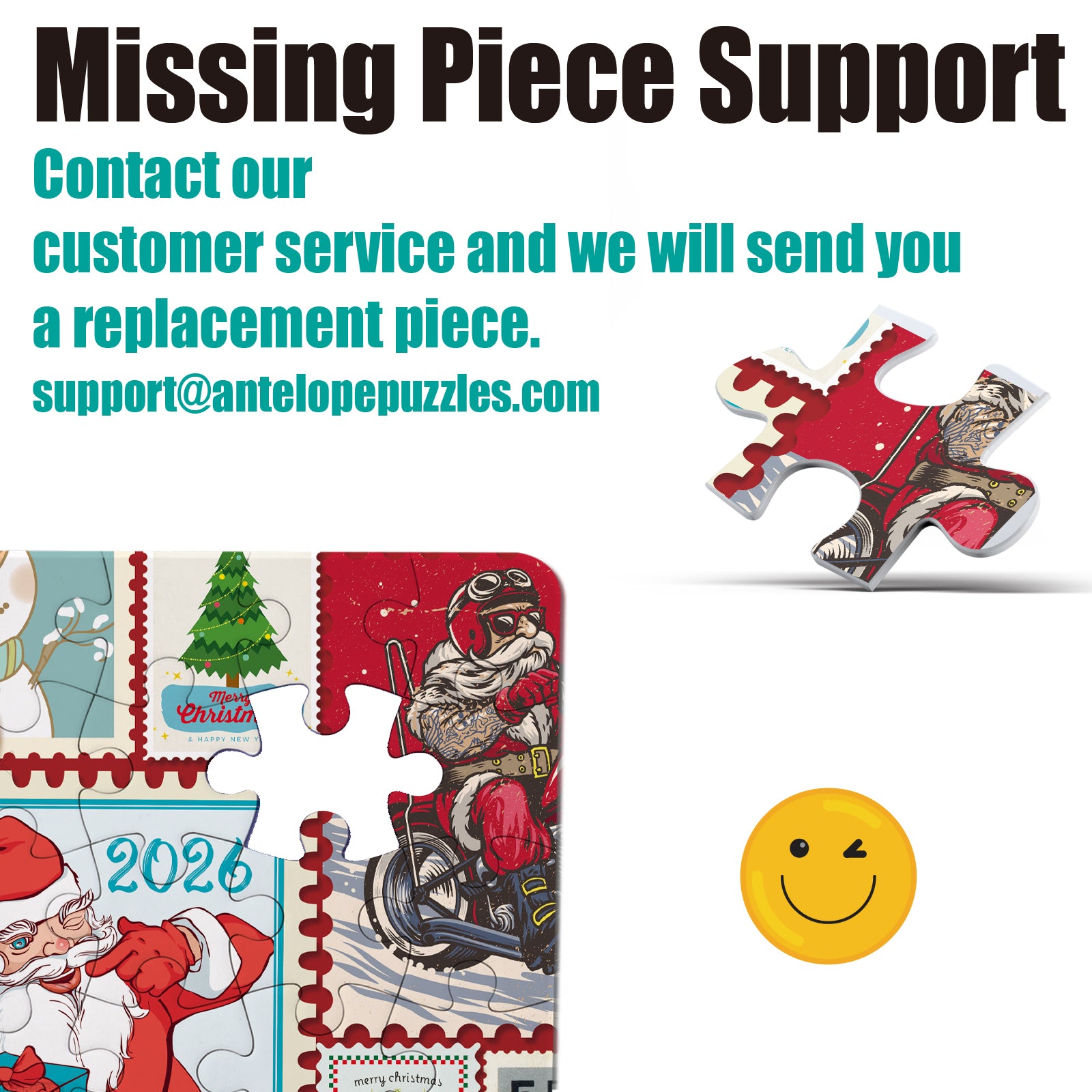 We understand how important it is to have a complete puzzle, and we apologize for any inconvenience. Rest assured, we're committed to ensuring your puzzling experience is enjoyable. If you have any additional questions or need further assistance, please don't hesitate to reach out to our customer support team. Thank you for choosing Antelope Puzzles!