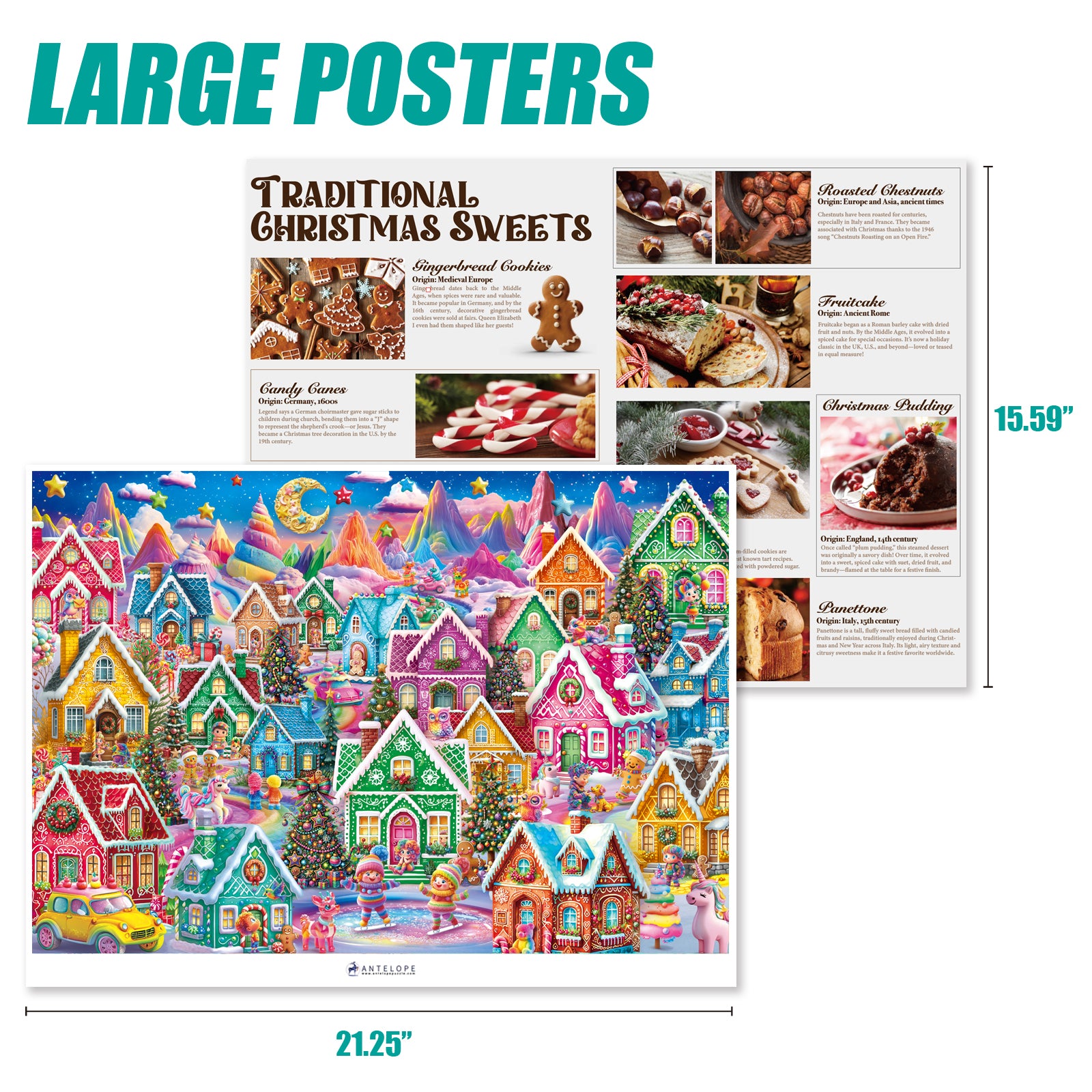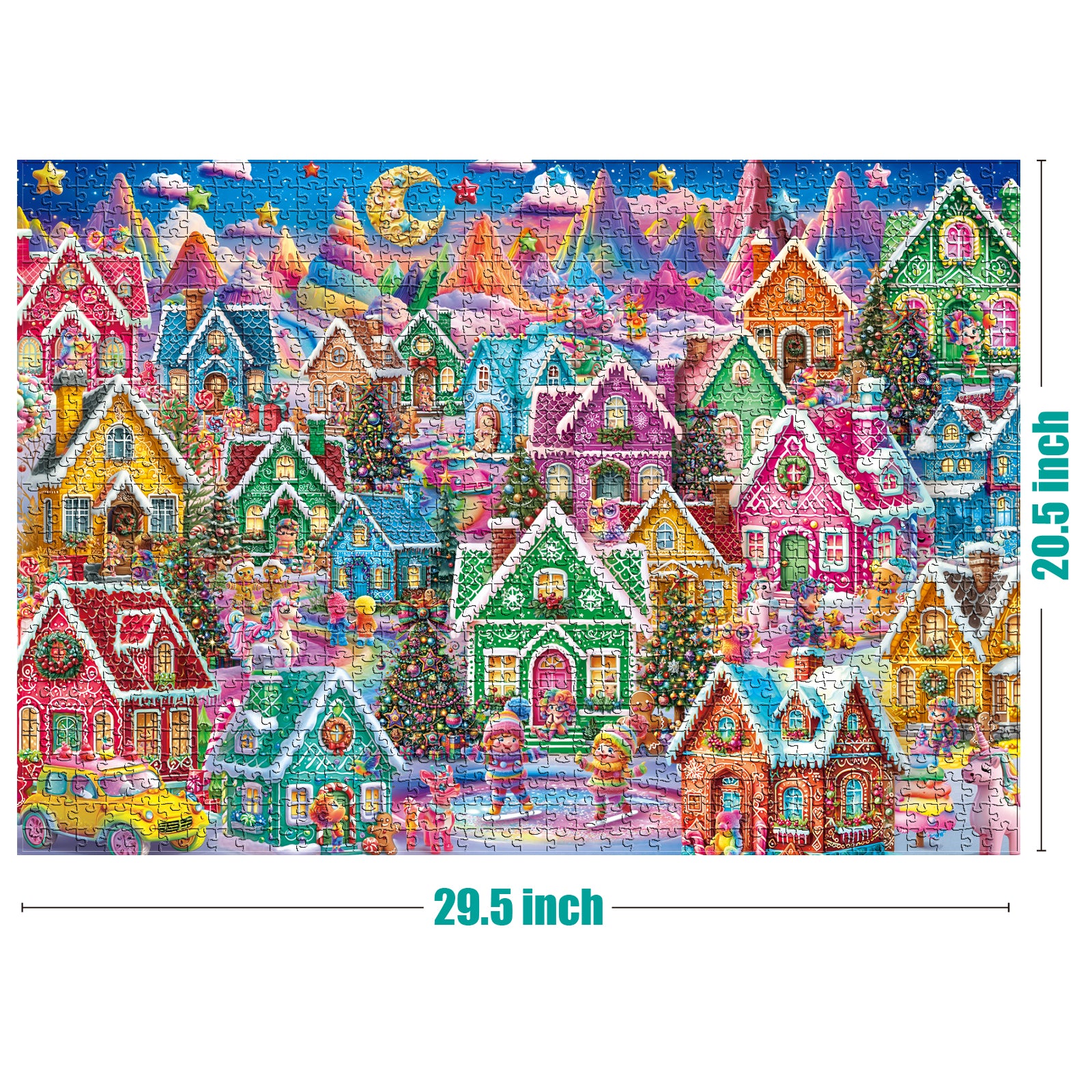 Christmas Jigsaw Puzzle 1000 Pieces for Adults – Gingerbread Village Holiday Winter Scene, Relaxing Festive Puzzle Gift for Adults & Families