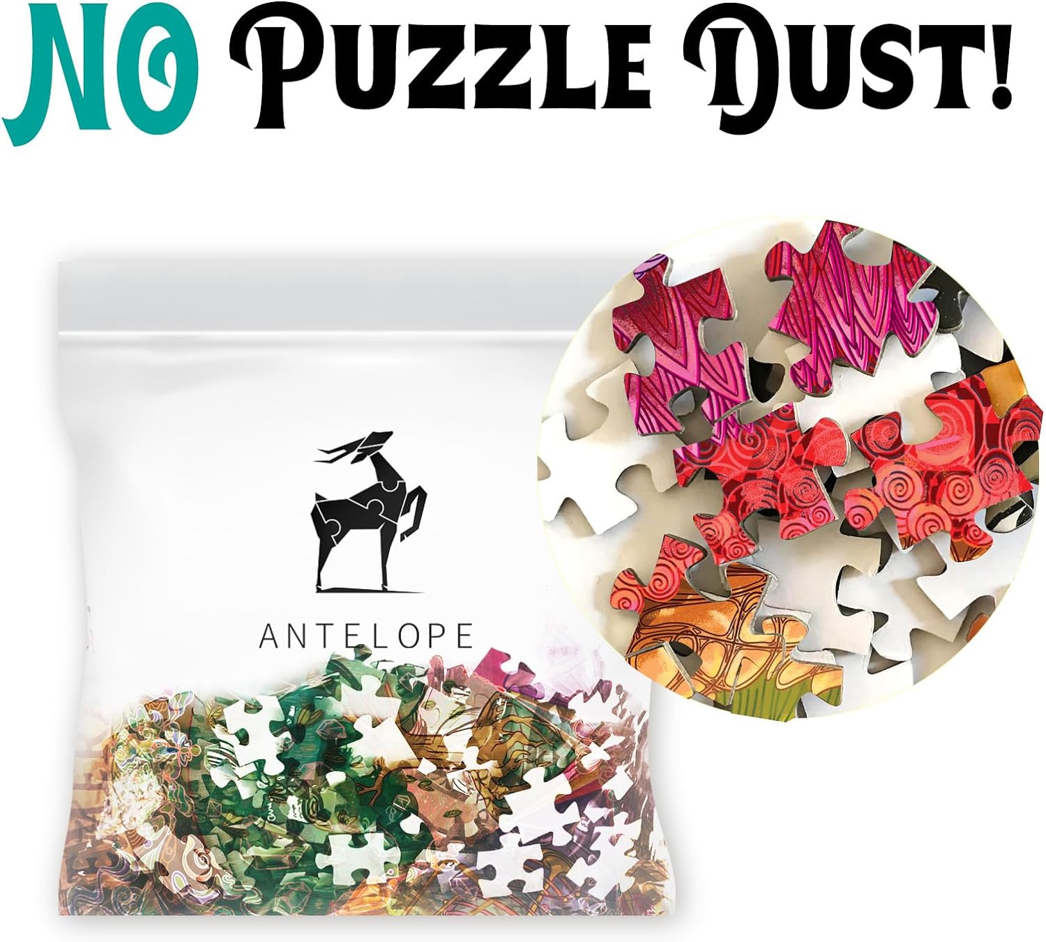Our puzzles illustrate high definition print with a matte finish. We want our puzzles to feel great textually in your hands. We guarantee 100% dust free. The ribbon cutting of our puzzles has also been refined to ensure smoother fit.